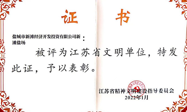 日前,江蘇省精神文明建設指導委員會發(fā)布《關于命名表彰2019-2021年度江蘇省文明村鎮(zhèn)、文明單位、文明校園(中小學)和江蘇省文明行業(yè)的決定》,新灘鹽場獲評“江蘇省文明單位”,這是繼2010年以來,該場第三次蟬聯(lián)該榮譽稱號。2022-05-20 -