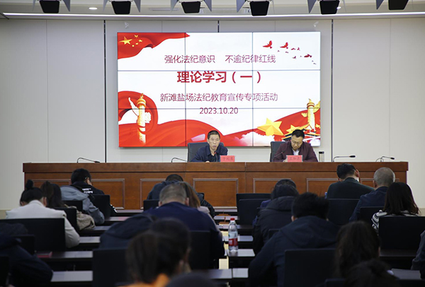 為深入貫徹落實黨的二十大報告和市委八屆五次全會精神,連日來,新灘鹽場采取“線上學(xué)習(xí)+線下宣講”相結(jié)合的方式,扎實開展法紀(jì)教育宣傳理論學(xué)習(xí)活動,引導(dǎo)全體職工牢固樹立“底線”思維和“紅線”意識,爭做遵紀(jì)守法的“明白人”。2023-10-23 -