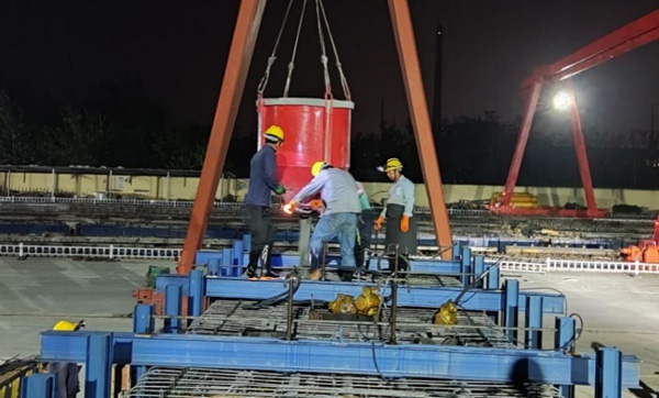 9月7日凌晨完成疏港航道大橋首件預(yù)制箱梁澆筑,為大橋段上部結(jié)構(gòu)施工進度達序時做好堅強保障。2022-09-07 -