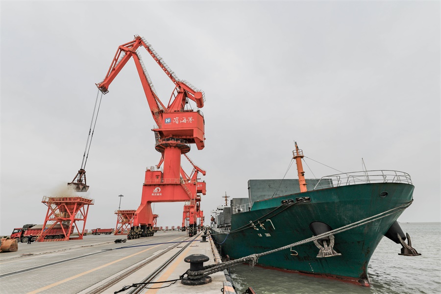 濱海港碼頭迎來復工后第一艘貨輪