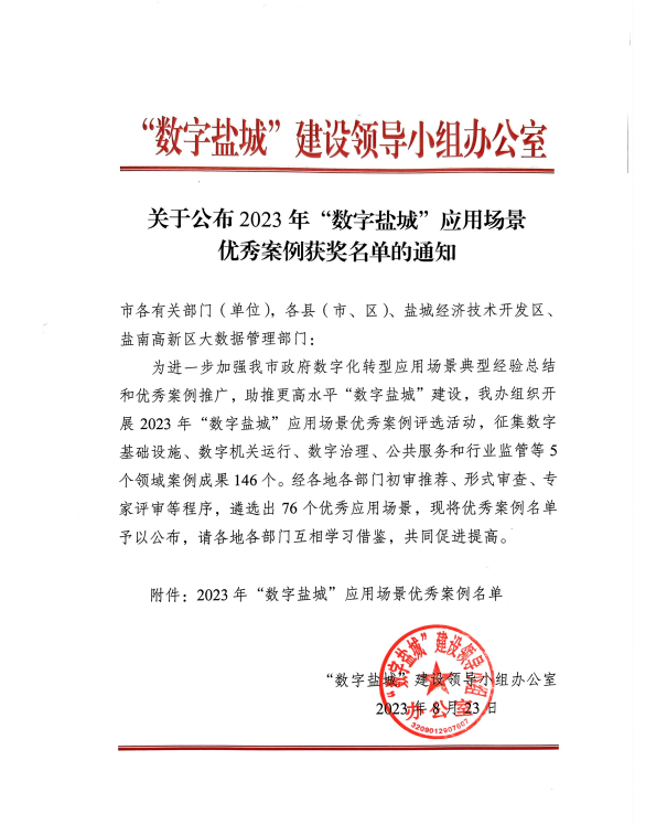 近日,“數(shù)字鹽城”建設領導小組辦公室公布了2023年“數(shù)字鹽城”應用場景優(yōu)秀案例名單,海興集團“智慧工地指揮中心”案例獲評一等獎。2023-09-07 -
